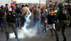 Фото: Carlos Garcia Rawlins / Reuters Против лидера венесуэльской оппозиции Хуана Гуайдо и находящихся с ним 70 человек в военной форме был применен слезоточивый газ, сообщает Reuters со ссылкой на очевидца с места событий. По информации агентства, это происходит близ авиабазы Ла-Карлота в столице Венесуэлы Каракасе. О том, что там собралась группа восставших военных, ранее сообщил министр информации Венесуэлы...
